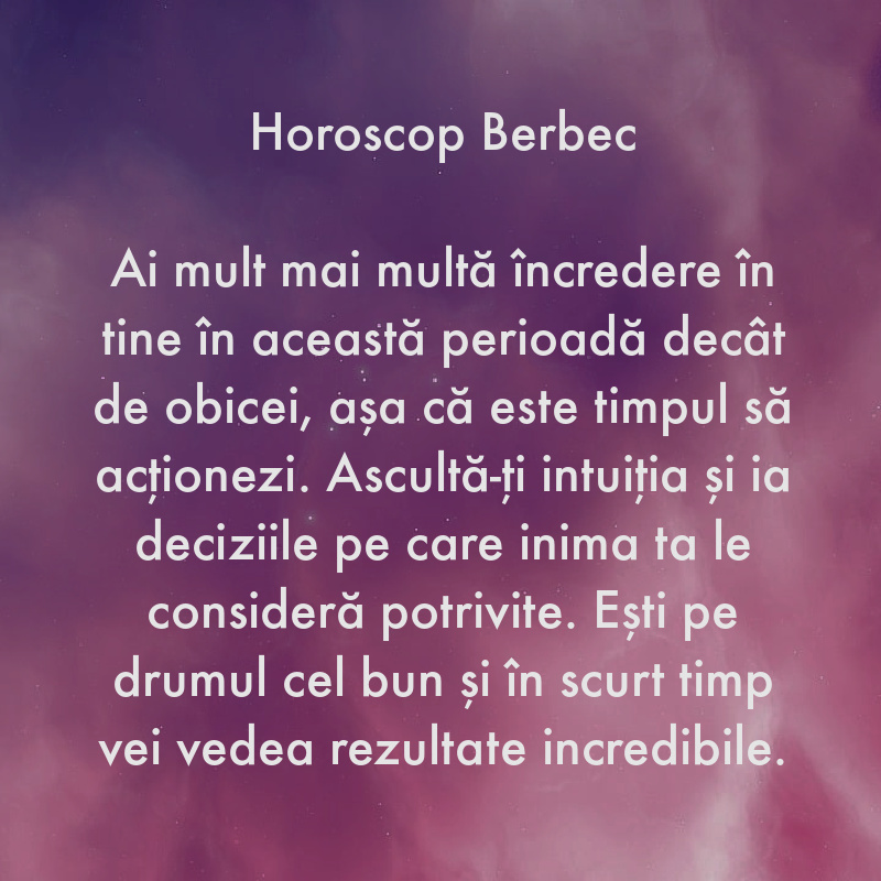 Ai mult mai multă încredere în tine în această perioadă decât de obicei, așa că este timpul să acționezi. Ascultă-ți intuiția și ia deciziile pe care inima ta le consideră potrivite. Ești pe drumul cel bun și în scurt timp vei vedea rezultate incredibiele.