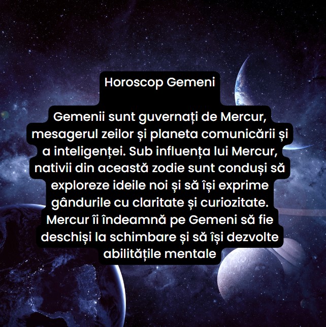Gemenii sunt guvernați de Mercur, mesagerul zeilor și planeta comunicării și a inteligenței. Sub influența lui Mercur, nativii din această zodie sunt conduși să exploreze ideile noi și să își exprime gândurile cu claritate și curiozitate. Mercur îi îndeamnă pe Gemeni să fie deschiși la schimbare și să își dezvolte abilitățile mentale.