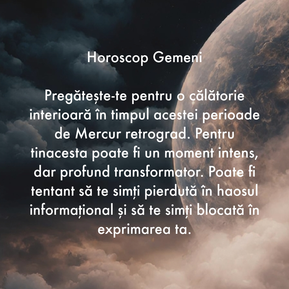 Pregătește-te pentru o călătorie interioară în timpul acestei perioade de Mercur retrograd. Pentru tinacesta poate fi un moment intens, dar profund transformator. Poate fi tentant să te simți pierdută în haosul informațional și să te simți blocată în exprimarea ta. Cu toate acestea, te încurajez să privești această perioadă ca pe un moment de auto-reflecție și de reevaluare a modului în care te conectezi cu ceilalți și cu tine însăți. În loc să te lași coplesită de confuzie, alege să te îmbraci în puterea conștientizării și a înțelepciunii care vine din introspecție.