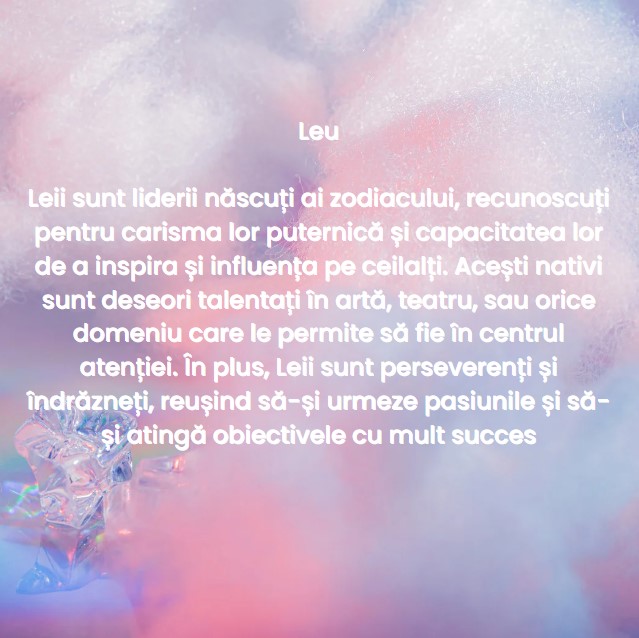 Leii sunt liderii născuți ai zodiacului, recunoscuți pentru carisma lor puternică și capacitatea lor de a inspira și influența pe ceilalți. Acești nativi sunt deseori talentați în artă, teatru, sau orice domeniu care le permite să fie în centrul atenției. În plus, Leii sunt perseverenți și îndrăzneți, reușind să-și urmeze pasiunile și să-și atingă obiectivele cu mult succes.