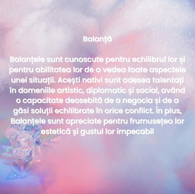 Balanțele sunt cunoscute pentru echilibrul lor și pentru abilitatea lor de a vedea toate aspectele unei situații. Acești nativi sunt adesea talentați în domeniile artistic, diplomatic și social, având o capacitate deosebită de a negocia și de a găsi soluții echilibrate în orice conflict. În plus, Balanțele sunt apreciate pentru frumusețea lor estetică și gustul lor impecabil.