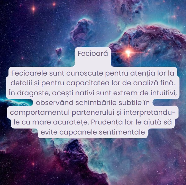Fecioarele sunt cunoscute pentru atenția lor la detalii și pentru capacitatea lor de analiză fină. În dragoste, acești nativi sunt extrem de intuitivi, observând schimbările subtile în comportamentul partenerului și interpretându-le cu mare acuratețe. Prudența lor le ajută să evite capcanele sentimentale.