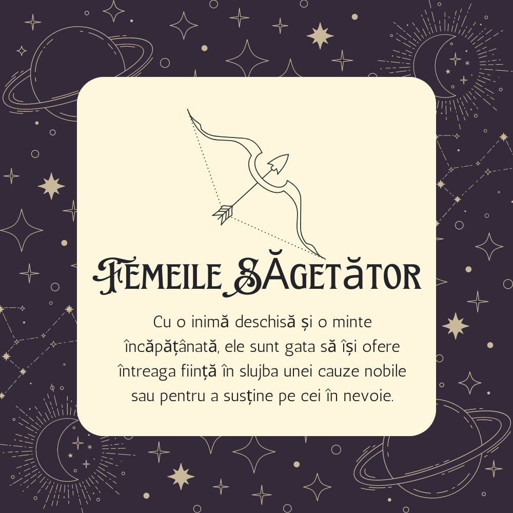 Femeile Săgetător sunt călătoarele spirituale, cu o viziune vastă și generoasă asupra lumii. Ele sunt aventuroase și curioase, căutând mereu să învețe și să exploreze, dar și să împărtășească cunoștințele lor cu ceilalți. Cu o inimă deschisă și o minte încăpățânată, ele sunt gata să își ofere întreaga ființă în slujba unei cauze nobile sau pentru a susține pe cei în nevoie.