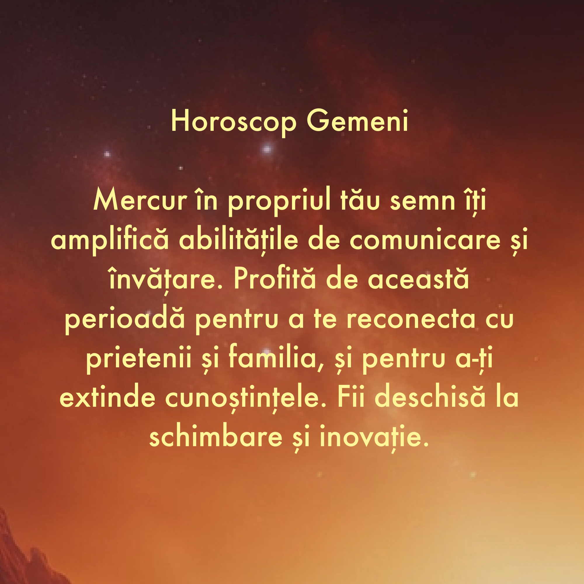Mercur în Gemeni te încurajează să îți explorezi adâncurile emoționale și să îți exprimi sentimentele cu sinceritate. Universul îți transmite că deschiderea și vulnerabilitatea îți vor aduce conexiuni mai profunde și mai autentice.