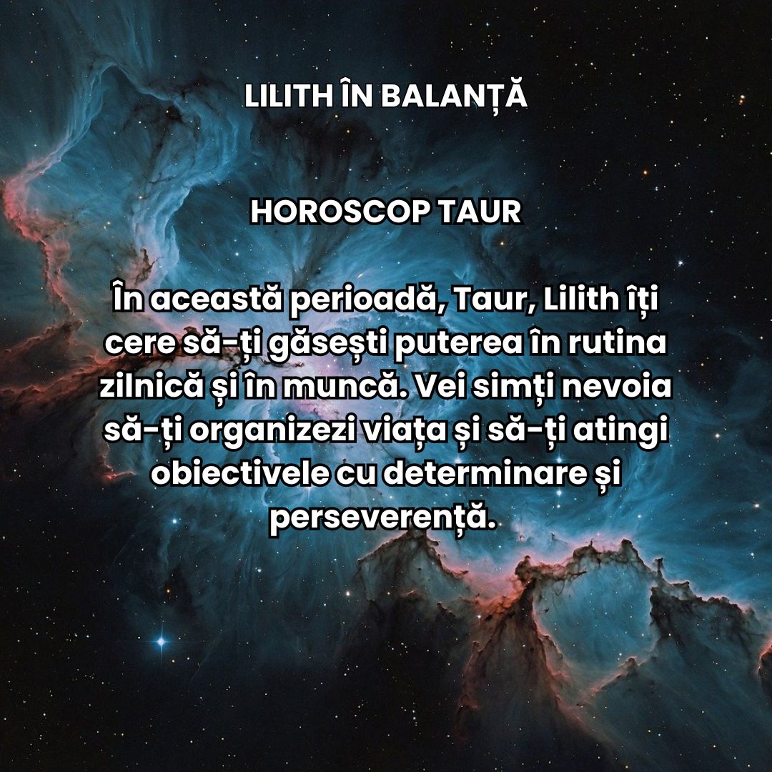 În această perioadă, Taur, Lilith îți cere să-ți găsești puterea în rutina zilnică și în muncă. Vei simți nevoia să-ți organizezi viața și să-ți atingi obiectivele cu determinare și perseverență. Poate vei întâmpina opoziție la locul de muncă, dar rămâi ferm și folosește-ți energia pentru a-ți îmbunătăți sănătatea și productivitatea.