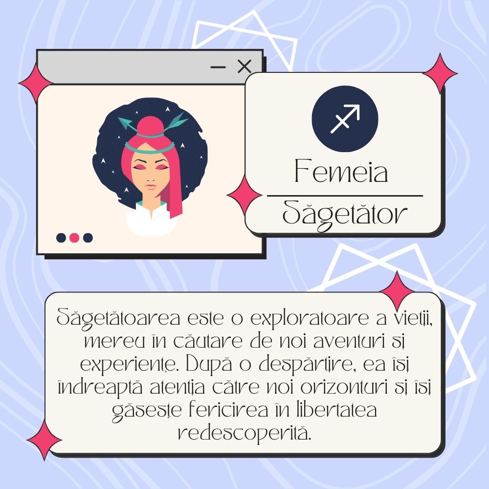 Săgetătoarea este o exploratoare a vieții, mereu în căutare de noi aventuri și experiențe. După o despărțire, ea își îndreaptă atenția către noi orizonturi și își găsește fericirea în libertatea redescoperită.