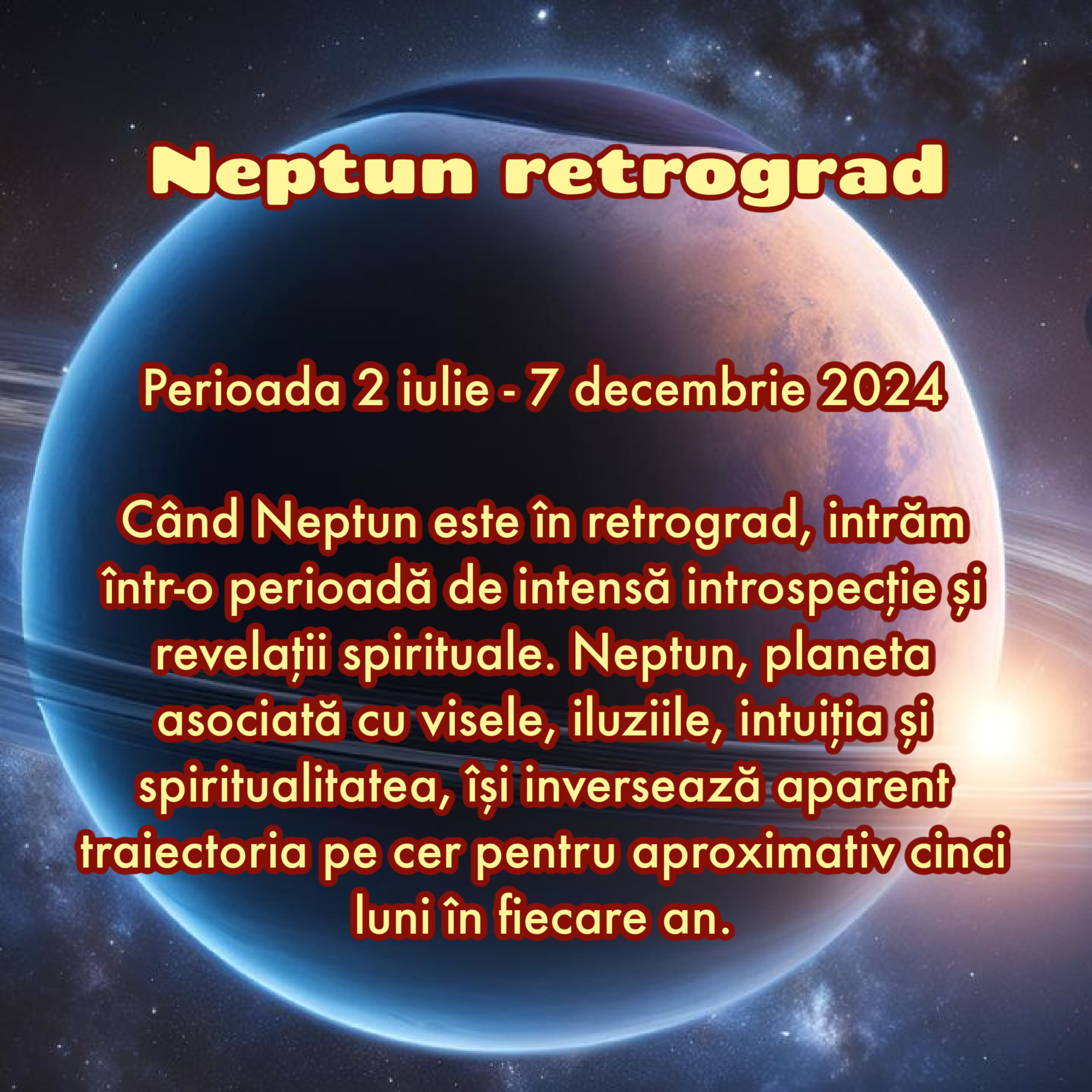 Când Neptun este în retrograd, intrăm într-o perioadă de intensă introspecție și revelații spirituale. Neptun, planeta asociată cu visele, iluziile, intuiția și spiritualitatea, își inversează aparent traiectoria pe cer pentru aproximativ cinci luni în fiecare an.