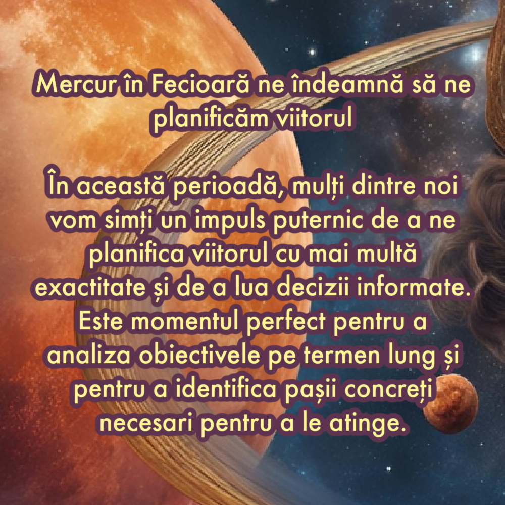 Mercur în Fecioară este cunoscut pentru capacitatea sa de a aduce claritate și ordine în gânduri și comunicare. Această perioadă este excelentă pentru a pune lucrurile în ordine, a crea liste și planuri detaliate, și a ne organiza atât în viața personală, cât și profesională.