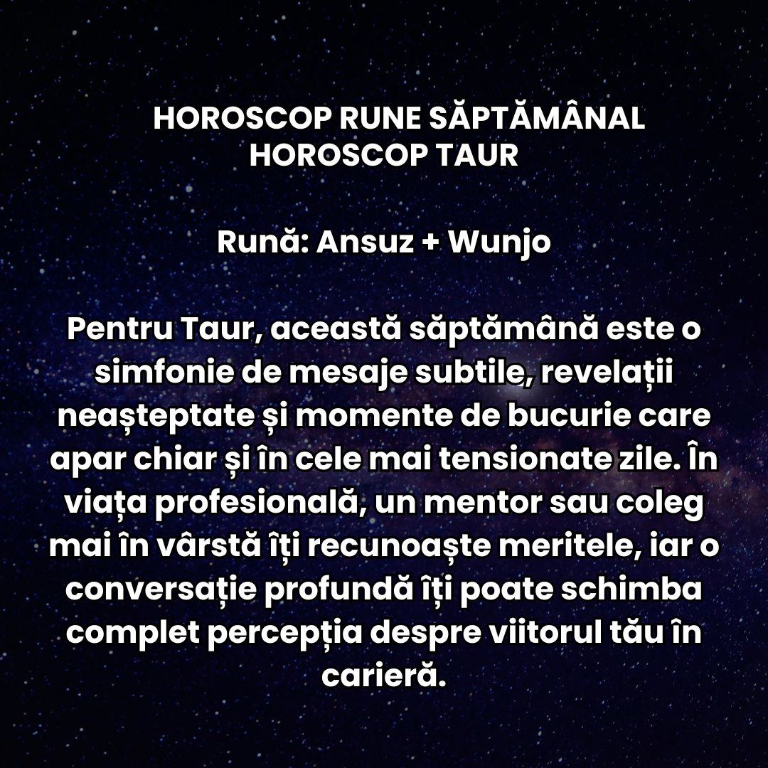 - Horoscop Rune 2026 TAUR: Vei descoperi echilibru între energie și răbdare! Vei culege roadele efortului consistent
