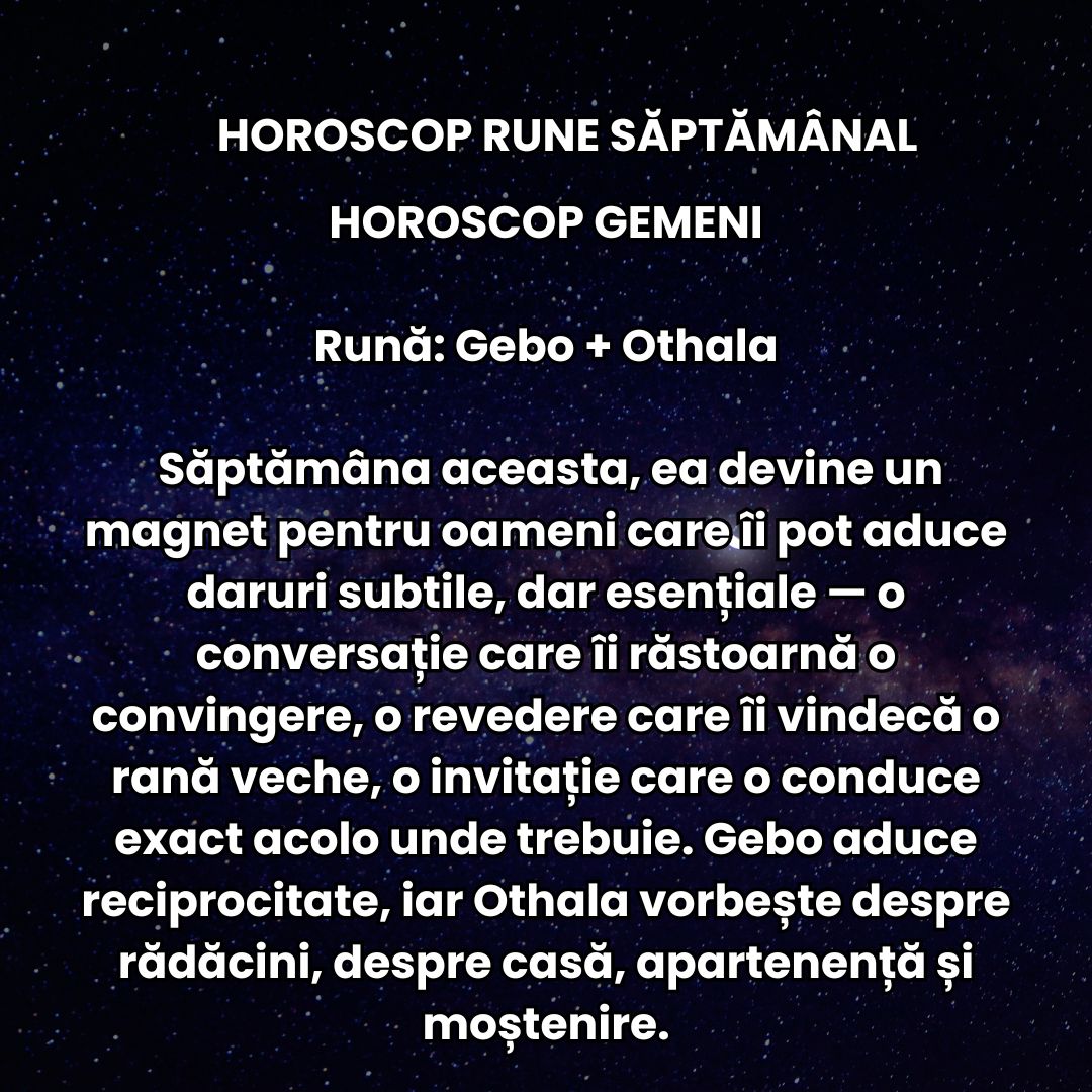 - Horoscop Rune 2026 GEMENI: Vei descoperi cine ești cu ajutorul comunității din jur și vei renunța la izolare și prejudecăți