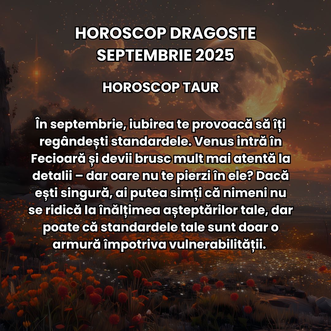 În septembrie, iubirea te provoacă să îți regândești standardele. Venus intră în Fecioară și devii brusc mult mai atentă la detalii – dar oare nu te pierzi în ele? Dacă ești singură, ai putea simți că nimeni nu se ridică la înălțimea așteptărilor tale, dar poate că standardele tale sunt doar o armură împotriva vulnerabilității. Dacă ești în cuplu, perioada eclipsei solare în Fecioară aduce claritate dureroasă – îți vezi partenerul exact așa cum este, fără perdea, și te întrebi: mai pot iubi acest adevăr? Finalul lunii te împinge să alegi între control și pasiune. Ce alegi?