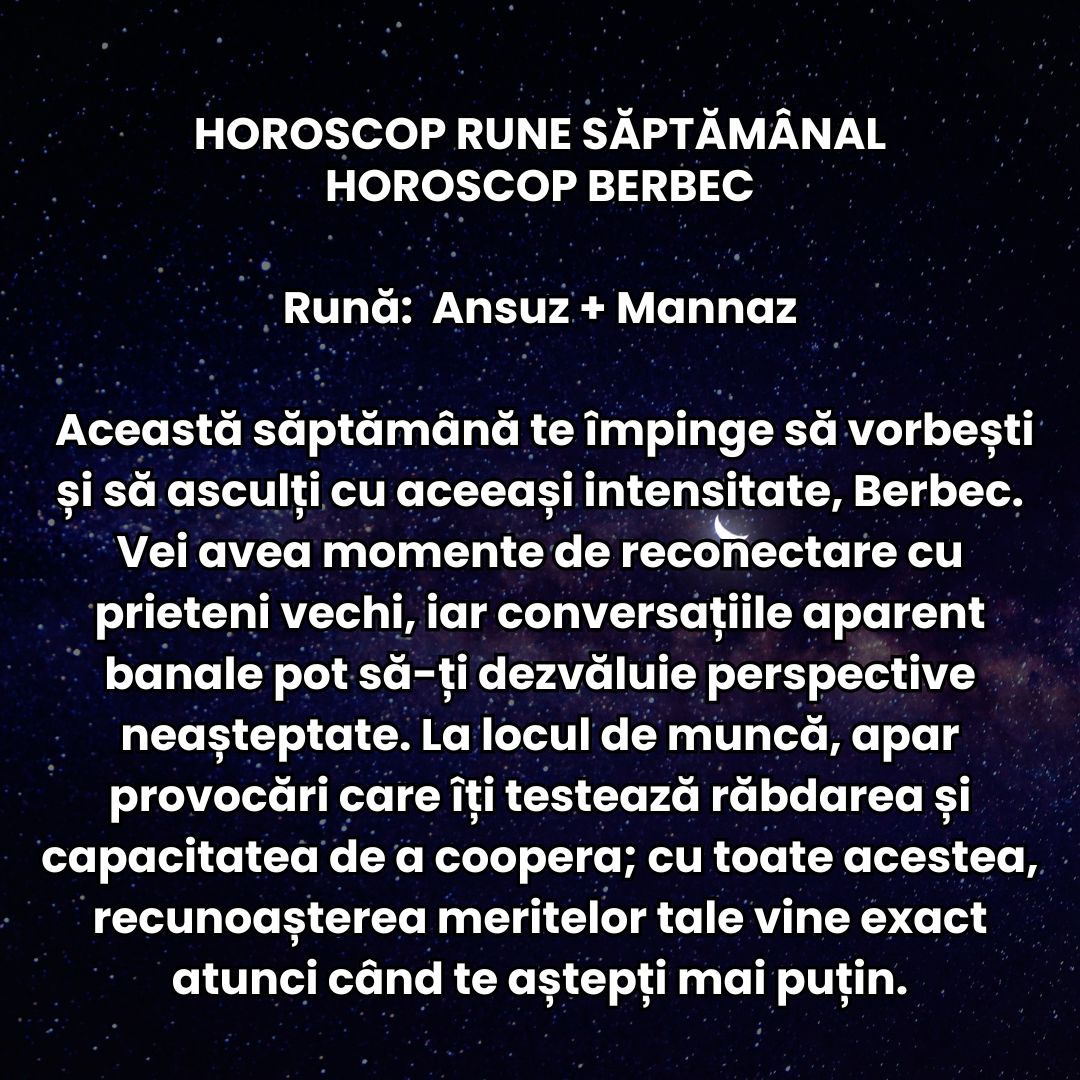- Horoscop Rune 2026 BERBEC: Vei descoperi ritmul sacru al schimbării și descoperi că progresul vine cu multă răbdare