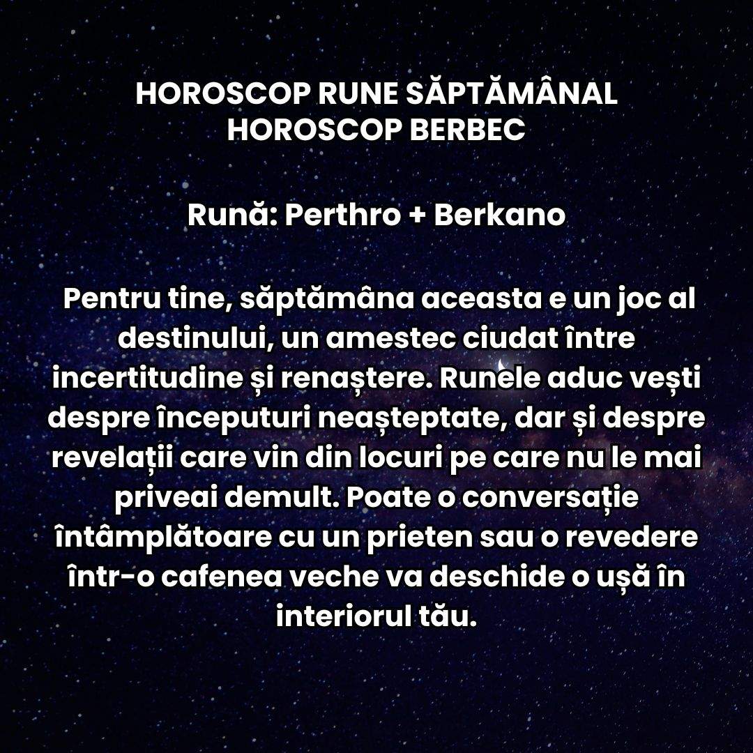 - Horoscop Rune 2026 BERBEC: Vei descoperi ritmul sacru al schimbării și descoperi că progresul vine cu multă răbdare
