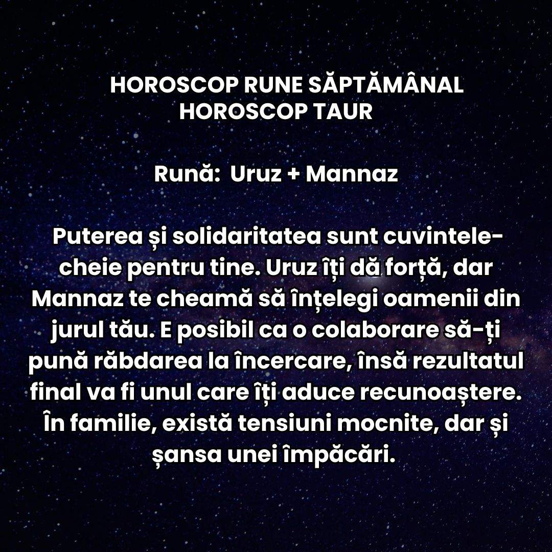- Horoscop Rune 2026 TAUR: Vei descoperi echilibru între energie și răbdare! Vei culege roadele efortului consistent
